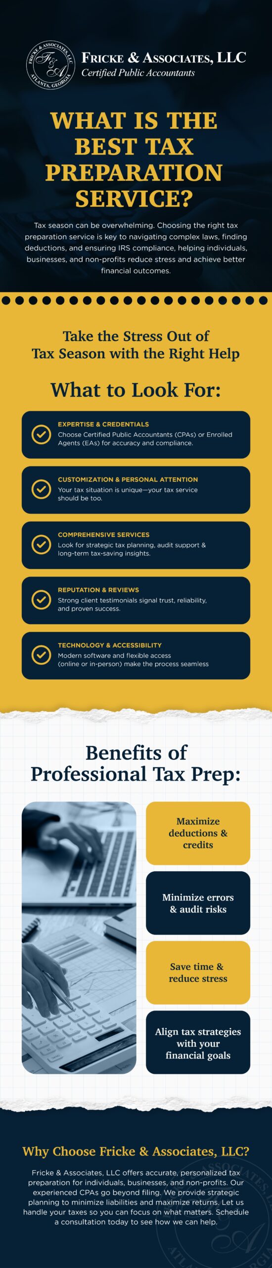 Tax season can be stressful for individuals, businesses, and non-profits. Navigating complex tax laws, identifying deductions, and ensuring compliance with IRS regulations require expertise and attention to detail. Selecting the right tax preparation services is crucial to minimizing stress and maximizing financial outcomes. But how do you determine the best tax preparation service for your needs?